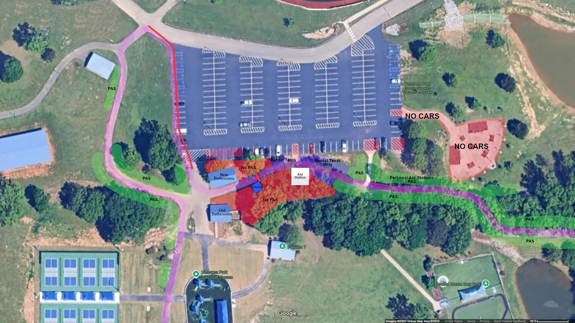 The Location of Rental Tents is show in Purple on the map Above